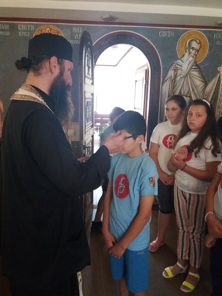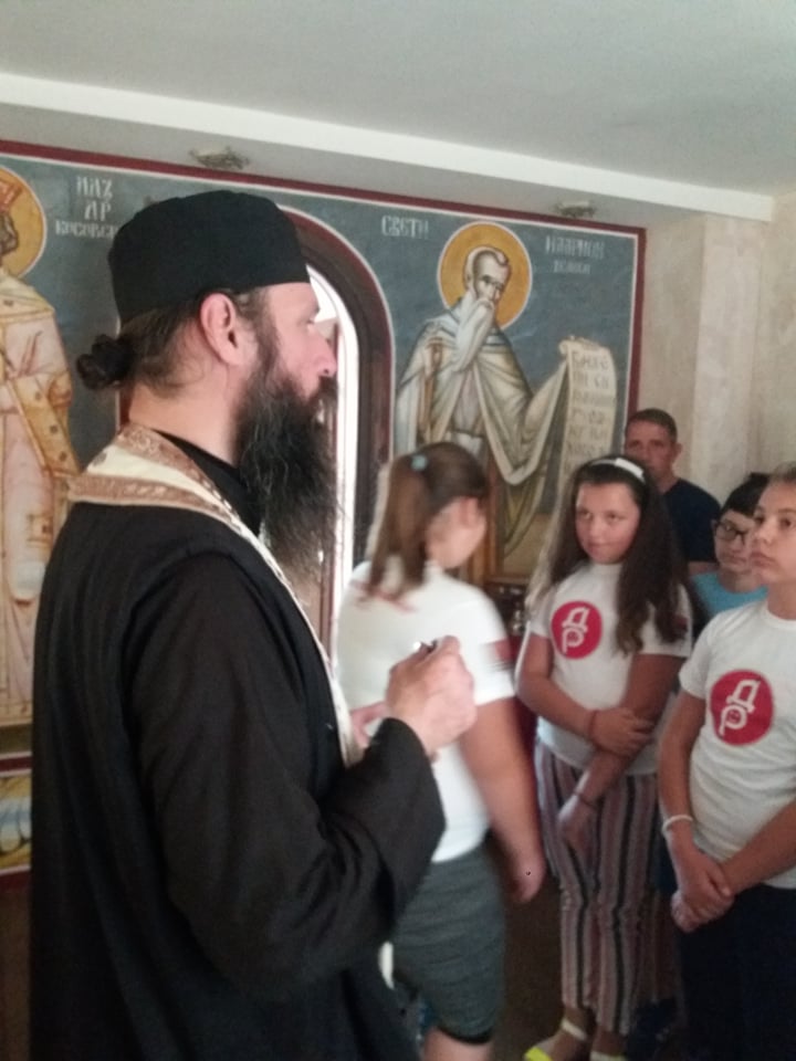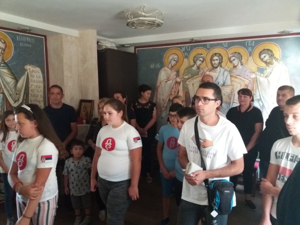 Friends of the organization “Children’s Joy” Gnjilane from Subotica and Titel visited Kosovo and Metohija, met their wonderful hosts from villages: Pasjane, Gornji Livoc, Parte, Pones, Silovo, Kmetovce, and Babin Most on June 28, 2019, and together with their guests visited the Gracanica Monastery, attended Holly Liturgy, and in the end visited Gazimestan. At the village of Babinom Mostu, brothers Petrovic organized a luncheon for all their guests. During the late afternoon they visited the the Monastery Draganac. After the sleepless night, and tired from the trip the guests visited village of Veliko Ropotovo and attended festivities of St. Vitus dances (Vidovdanske Igre).
